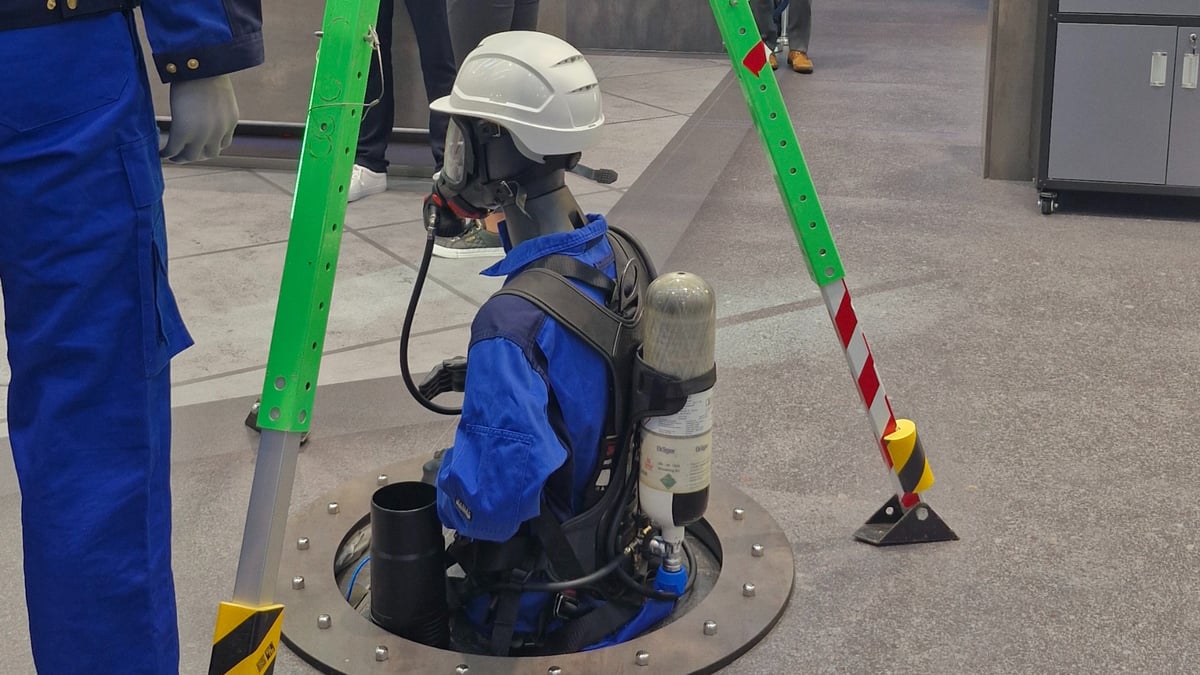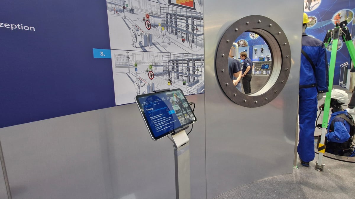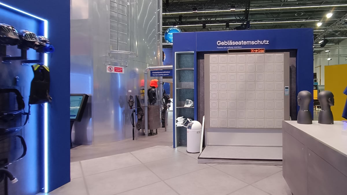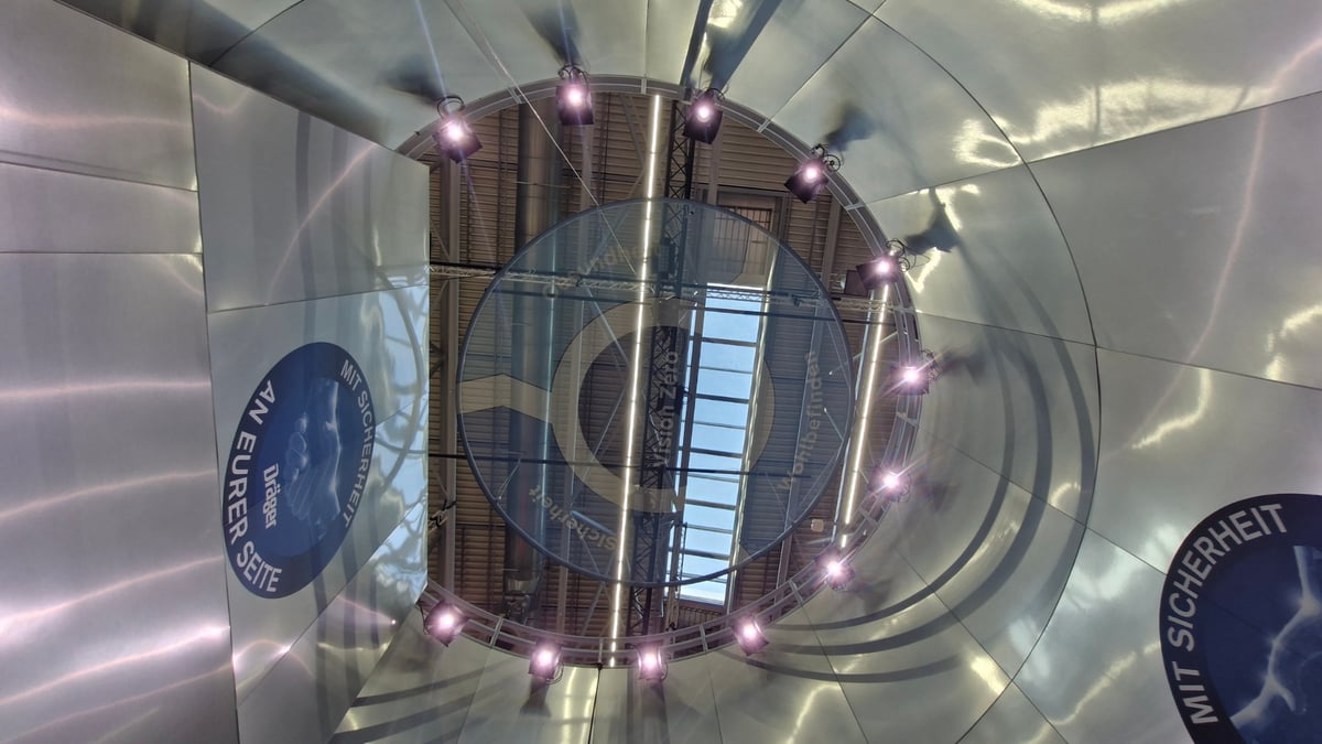 Rund um dieses zentrale Industrieszenario wurden die verschiedenen Produkt- und Lösungsbereiche von Dräger in einem logischen Anwendungskontext angeordnet. Ziel war es, Produkte nicht isoliert zu präsentieren, sondern möglichst in ihrer realen Anwendung innerhalb eines Confined-Space-Szenarios erlebbar zu machen.